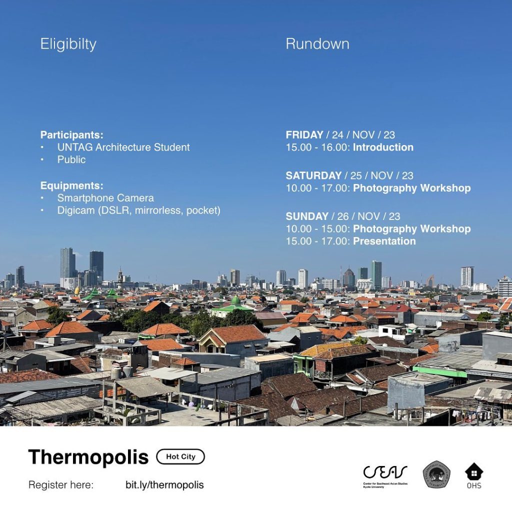 Thermopolis berasal dari kata Thermal yang berarti panas, dan Polis yang berati kota. Lokakarya ini bertujuan untuk merekam respon-respon warga dalam menghadapi perubahan iklim yang juga terasa dalam lingkungan perkampungan kota.